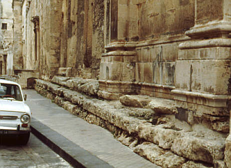 Nordseite mit der freigelegten Krepis, dem dreistufigen Unterbau des antiken Athenatempels