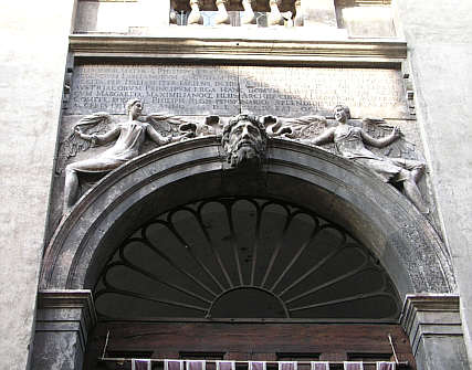 Eingangsarkade mit geflügelten genien und Inschrifttafel