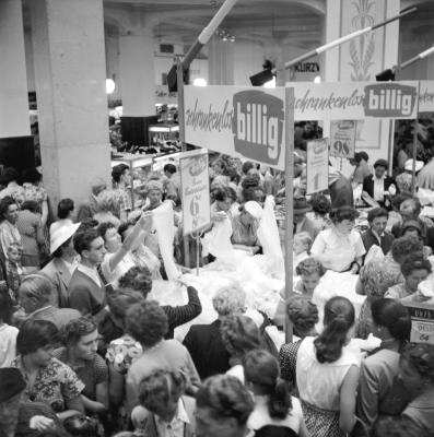 warb ein Kaufhaus für den Sommerschlussverkauf 1954.