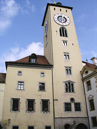 Rathausturm Aus einem Patrizierhaus des 13. Jh. mit Turm hervorgegangener ältester Teil des Rathauskomplexes. In den beiden Zimmern im Obergeschoss von Gebäude und Turm tagte das Kurfürstenkollegium des Reichstags.