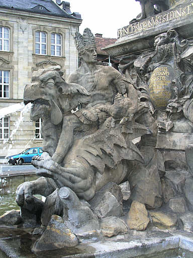Brunnenfiguren der vier Kontinente und der vier im Fichtelgebirge entspringenden Flüsse: