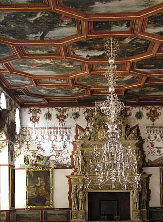 Die Kassettendecke wurde von Elias Gunzenhäuser aus Stuttgart, die Gemälde in den Feldern von Bathasar Katzenberger1600/01 gefertigt.