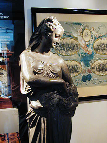 Muse Gusseiserne Figur von der ehemaligen Festhalle in Karlsruhe