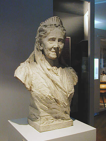 In der Ausstellung ist sie mit Blick auf die von ihr geliebten und geförderten badischen Landestrachten aufgestellt.