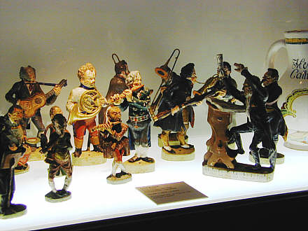 Karikaturistische Musikerfiguren aus der Werkstatt Anton Sohns, Zizenhausen