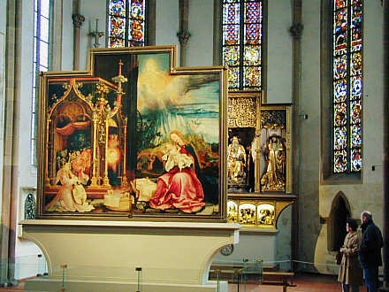 Zweite Schauseite Links das Konzert der Engel, rechts Maria mit dem Kind