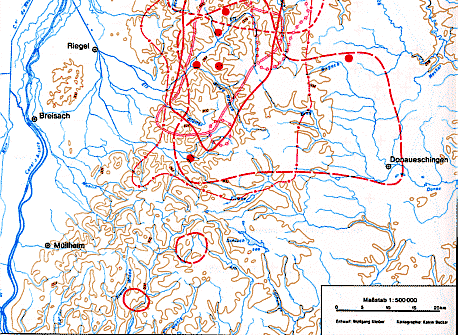 Übersichtskarte der vorgermanischen Namen und Reliktworträume im Mittleren und Südlichen Schwarzwald als Kennzeichen der Siedlungsräume der gallorömischen Bevölkerung zwischen dem 3. und 8. Jahrhundert. Wolfgang Kleiber: Sprachliche Kontinuität an Mosel und Mittelrhein, am Oberrhein und im Schwarzwald. Eine vergleichende Skizze. In: Aspekte und Probleme der römisch-germanischen Kontinuität. Sprachkontinuität an Mosel, Mittel- und Oberrhein sowie im Schwarzwald. Stuttgart: Steiner, 1992. Karte 64 |