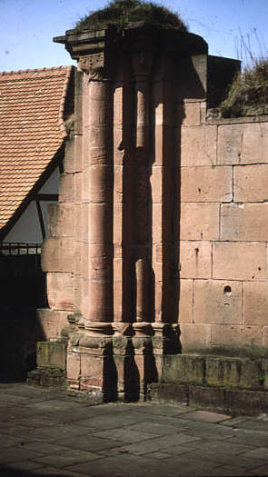 Rechteckvorlage mit eingestellter Säule und Halbsäulenvorlage im Bereich der ehem. Pfalzkapelle