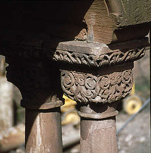 Darunter: Skulptierte Kapitelle der Palasarkaden