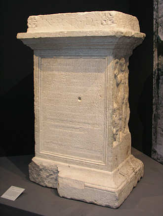 Die Reliefs auf den Schmalseiten zeigen rechts den Kriegsgott