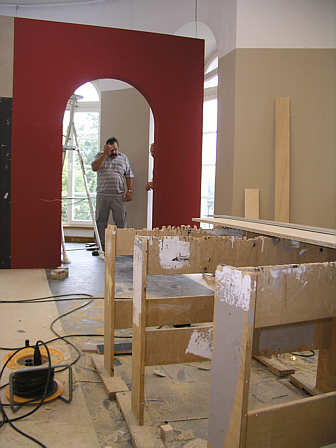 Wo später der museumspädagogische Bereich zum Mitmachen und Erleben sein wird, wird noch geklopft, gehämmert, gebohrt und geleimt.