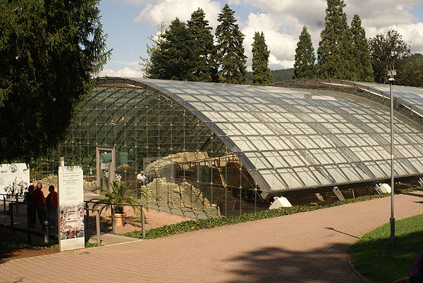 integrieren. Im Innern überbrückt ein Besuchersteg die Badebecken,