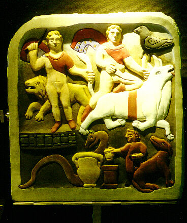 Kultbild aus dem Mithräum in Heidelberg-Neuenheim. Original im Badischen