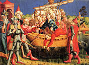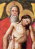 | Mit Konrad Witz löste sich die Kunst vom sog. "Weichen Stil" der Parler und dessen geschwungenen Linien und betonte statt dessen die Plastizität der Figuren. Die Gewänder fallen nicht mehr weich und fließend, sondern brechen sich in schweren und eckigen Falten und lassen die Figuren nicht mehr elegant und leicht erscheinen, sondern eher wuchtig und erdenschwer. Der Rottweiler Meister steht für eine lokale Tradition, die das Werk von Konrad Witz offenbar geprägt hat. | |||||||||