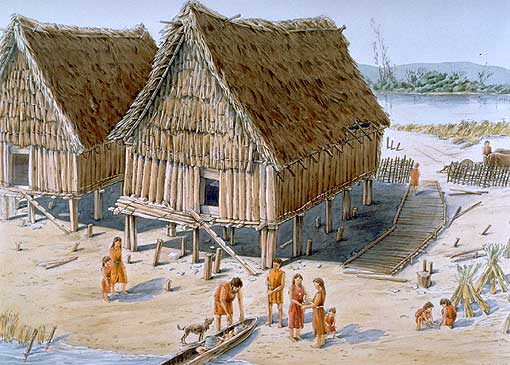 Brigitte Gubler, Tauschhandel in einem neolithischen Dorf, um 2700 v. Chr. (1996)
