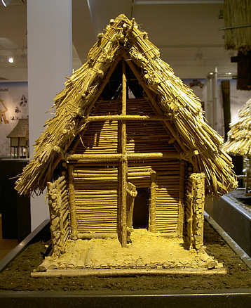 Modell eines ebenerdigen Hauses aus der jungsteinzeitlichen Siedlung von Bad Buchau-Taubried (3900 v. Chr.)