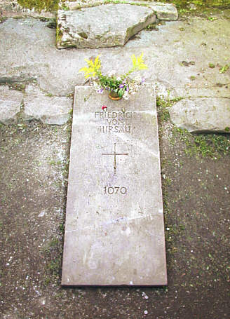 die Abgänge zur Krypta. Hinter der Kirche der Kreuzgang,