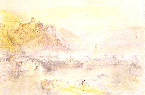 Heidelberg vom Haarlassweg aus gesehen, 1844. Das Bild ist im Katalog mit "von der Hirschgasse aus gesehen" betitelt. Standort des Künstlers ist aber eher der Haarlaßweg vor Ziegelhausen |