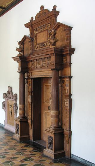 Bei der Rekonstruktion der Innenräume war Carl Schäfer bemüht, in allen Details den Eindruck eines Reneissance-Raums zu schaffen., Dazu gehörten auch aufwendig gestaltete Türen mit Portalgewänden und -rahmen.
