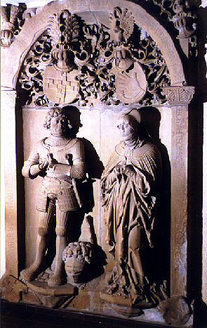 Der Stein ist signiert mit M. LSP. VH. und 1519 Die Verstorbenen stehen aufrecht, den Rahmen gibt ein Pfeilerpaar mit antikisierenden Kapitellen, das einen Rundbogen trägt. Die Schrift ist in klarer Antiqua ausgebildet, und nur die große Zahl der Abkürzungen erinnert noch an den mittelalterlichen Brauch. Der Epitaph ist eines der ersten Beispiele für das Vordringen der Renaissance in die deutsche Kunst. |