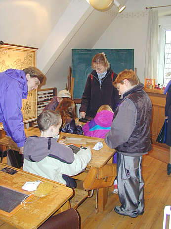 Der Schulraum Kinder erleben am Museumstag das Gefühl, mit dem Griffel auf die Schiefertafel zu schreiben |