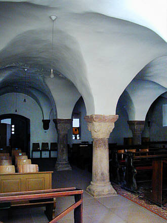 Untypisch für eine Zisterzienserkirche hat die Klosterkirche eine romanische Hallenkrypta mit Kreuzgewölben, die auf vier stämmigen Säulen mit skulptierten Würfelkapitellen ruhen.