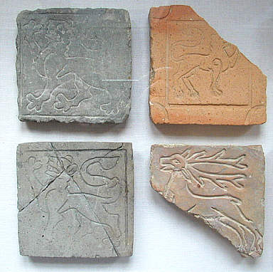 Figürliche Motive: Drache, Hirsch, Löwe, 13. Jahrhundert Seitenlänge 12,5 bis 14,5 cm.