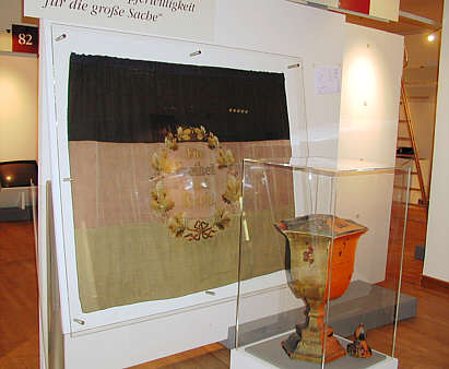 Fahne der Bürgerwehr Haßmersheim Wahlurne in den Farben Schwarz-Rot-Gold beides 1848 Gemeinde Haßmersheim / Museum im Bock, Leutkirch |