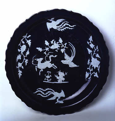 Schale mit eckig gelappter Kante Mitte 14. Jahrhundert, Yuan Dynastie, China Keramik mit Unrerglasurmalerei, Fuß unglasiert. Durchmesser 41,.5 cm Topkapi Saray Museum, Istanbul Foto Hadiye Cangokce