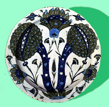 um 1540 Iznik, Türkei Keramik mit Unterglasurmarei, Duchmesser 35,5 cm Calouste Gulbenkian Museum, Lissabon (inv. no. 818) Foto Reinaldo Viegas