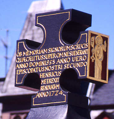 Im Kampf um die Stadtherrschaft veränderten die Bürger im 13. Jahrhundert den Sinn des Kreuzes durch die Inschrift "Zum Gedenken an die Kreuze, die vom Himmel fielen im Jahr des Herrn 958 im zweiten Jahr der Regierung unseres Episkopats. Heinrich errichtete mich."