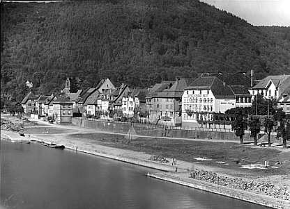 Blick von der Neckarbrücke auf die Altstadt Badische Bahnlinie Heidelberg - Würzburg |