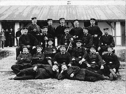 Gruppenbilder wurden zu allen Gelegenheiten angefertigt. Körperhaltung und besondere merkmale der Dargestellten sind immer zeittypisch - wie hier z. B. der Schnurrbart a la Kaiser Wilhelm