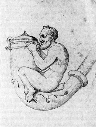 Tabackspfeife mit Teufelchen, Bleistiftzeichnung um1825