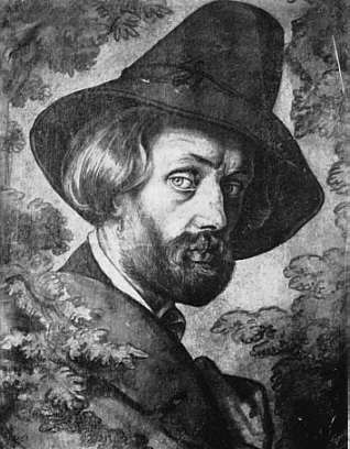 Sandhaas mit 39 Jahren, Selbstporträt, Aquarell/Tempera, um 1840