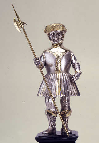 Die Figur stellt einen Stadtwächter von Konstanz dar. Diese „Scharwache" rekrutierte sich aus Bürgern der Konstanzer Handwerkszünfte. Ihre Aufgaben waren Gefahren abzuwenden, für Ruhe und Ordnung zu sorgen, Feuer zu melden und Zölle zu erheben. Im Kriegsfall verteidigten sie einen bestimmten Abschnitt der Stadtmauer. Durch den abnehmbaren Hut gibt sich die hohle Figur als Trinkspiel zu erkennen.