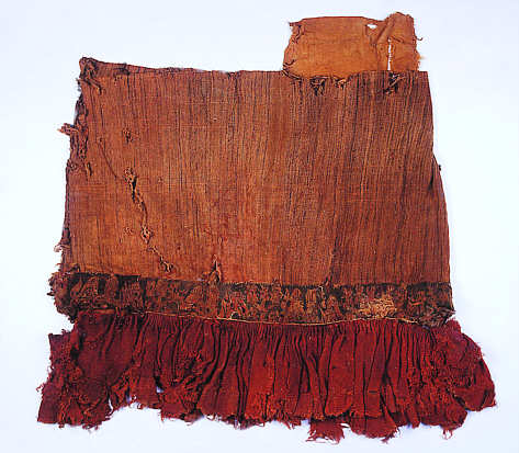 über dem rotfarbigen Volant zeigt figürliche Darstellungen.
