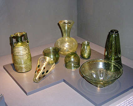 Gläser der Zeit von 370 - 450 aus den Gräbern einer vermutlich heidnischen germanischen Gutsbesitzerfamilie