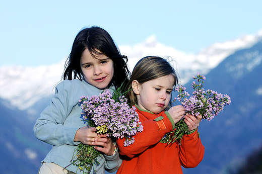 Camille und Ambra sammeln Blumen in Seelisberg UR