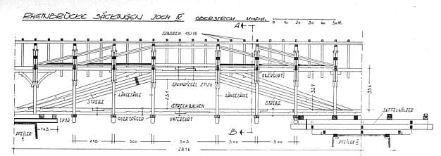 von oben nach unten. Unten: Schnitt durch das Joch 4 der Rheinbrücke mit Darstellung