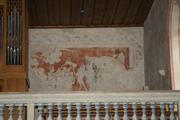 An der Eingangsseite hinter der Empore eine spätmittelalterliche