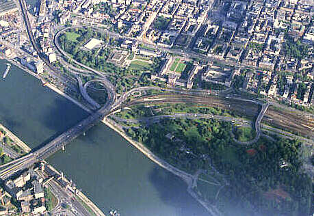 | Zum Thema "Die Stadt am Fluß" haben wir eine Karte vom Ende des 18. Jahrhunderts und ein Luftbild der modernen Großstadt | |||||||||