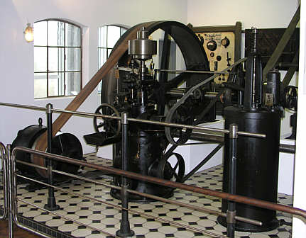 Im Bild der vom Schwungrad angetriebene Dynamo (links unten)