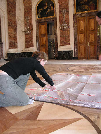 Die Supraporten in den Appartements können am Boden liegend ausgepackt werden. Sie sind nu auf Spannrahmen aufgezogen und wiegen ca 15-20 kg. Ihre Rahmen erhalten sie erst vor Ort.