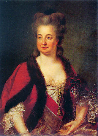 Wiederholung des Porträts von 1767 unter Beibehaltung der Kleidung, aber mit Veränderung der Gesichtszüge. Die rechte Hand ist gesenkt und verdeckt nicht mehr das Ordensband. |