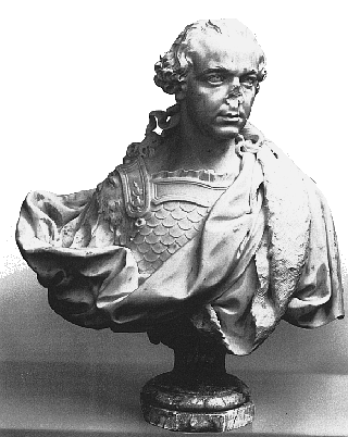 | Peter Anton von Verschaffelt: Büste des Kurfürsten Carl Theodor, um 1758 Die Marmorbüste des Kurfürsten von stellt ihn im antiken Schuppenpanzer dar, über den er einen barocken Hermelinmantel als Zeichen seiner fürstlichen Würde trägt. Das Bildnis scheint auf Grund seiner Lebensnähe nicht nach einer Vorlage gearbeitet worden zu sein. |