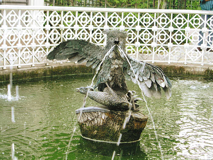 Der Uhu mit dem geschlagenen Fasan in den Fängen