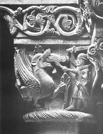 Dietrich befreit Sintram aus dem Schlund des Drachen (aus der Thidrekssaga) (letztes Viertel 12. Jahrhundert)