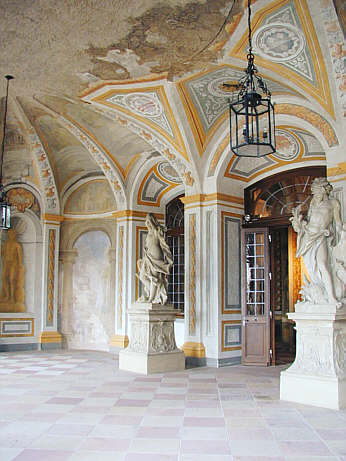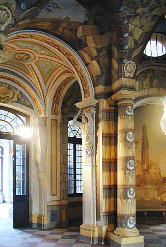 gehört auch das Laubenzimmer, das mit seiner Ausmalung die Illusion