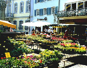 Hier bieten  täglich Blumen- und Gemüsehändler
